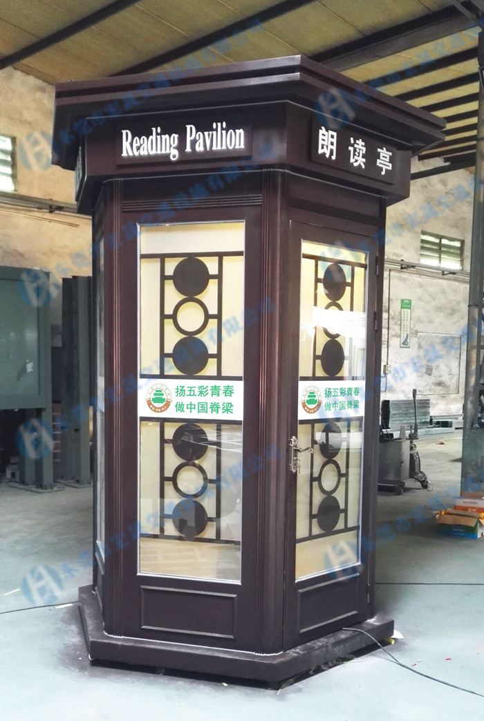朗讀亭的設計就是為了讓工作繁忙的人們在閑暇時間可以有一個個人空間來表達自己的聲音,暢所欲言,可以喚醒人們潛藏的朗讀熱情,也能滿足了日常人們朗讀的精神追求,讓每個人都認識到閱讀的美和音韻的美,通過大聲朗讀的方式喚醒人們家庭文學的審美感知,這是一個很好的宣泄方式。多去朗讀亭朗讀,能增加人們的記憶力,是一件愉悅身心的事。朗讀亭一般出現(xiàn)在學校里面、圖書館等比較有文化氣息的地方。朗讀亭的外觀設計也是非常獨特,類似于電話亭的樣子,但是比電話亭更精致點,外觀很復古,富有文化底蘊,朗讀亭里面的設備也是一體化的,會提供麥克風和一體機來朗讀。如果有需要定做朗讀亭,可以聯(lián)系東莞宏晟交通設施有限公司,我司是專業(yè)制作朗讀亭的廠家,歡迎您的來電咨詢!